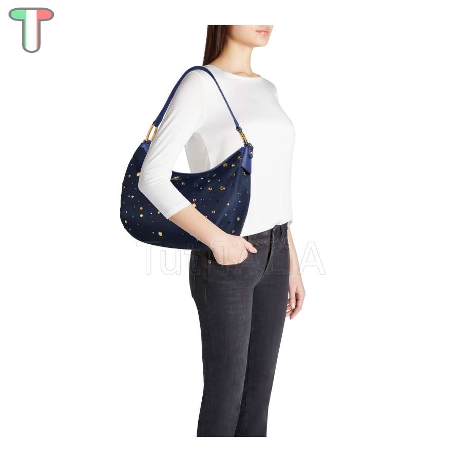 Collection 2025 FW.  Fabricant: Braccialini.  Ligne: Beth.  Fonctionnalité: sac à main.  Matériau: Polisynt.  Couleur: bleu.  Poignée: Simple avec bandoulière amovible et réglable.  Fermeture: fermeture zippée.  Dimensions: 33x23x11.5 cm.  Hauteur de la poignée: 26 cm.  Poids: 0.65 kg.